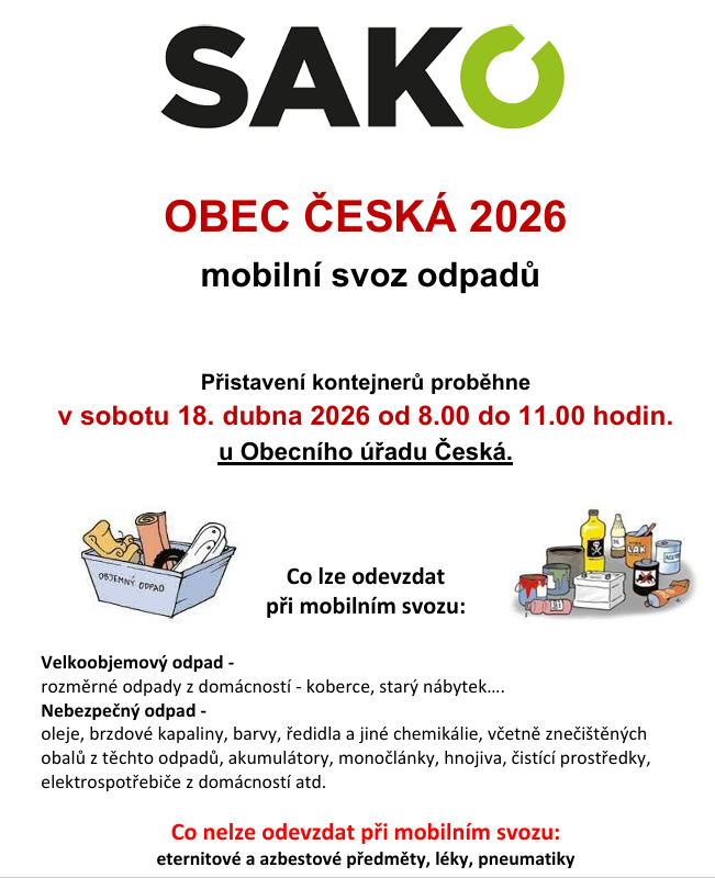 Sběr velkoobjemového a nebezpečného odpadu jaro 2026